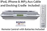 Sony Under the Cabinet Space Saving Stereo Sound System with CD Player, AM / FM Digital Tuner Radio, 15 Station Presets, Bass Reflex Speakers, LCD Backlit Display Clock, Magnetic Remote Control(Batteries Included), Cooking Timer, Built-In AUX Cable & Cradle for any iPod, iPhone, MP3 Digital Audio or Tape Cassette Player *BONUS* DBsonic CD Player Lens Cleaner Included